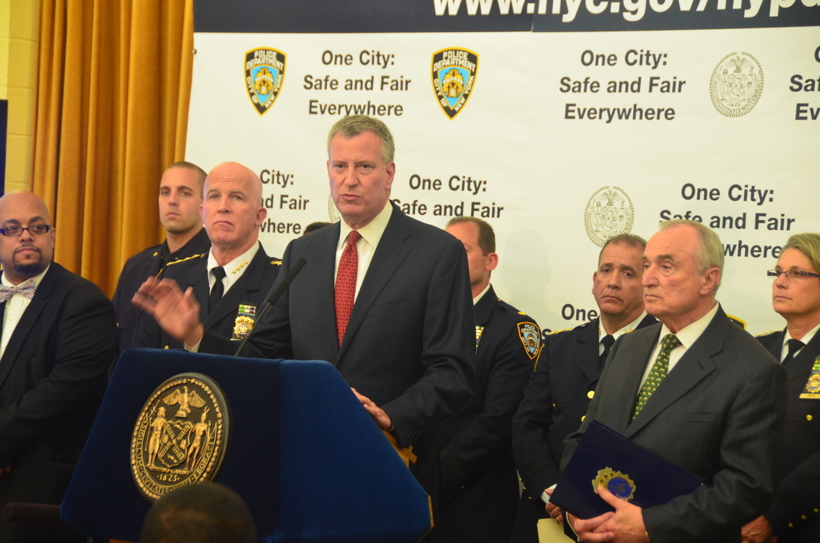 NUEVA YORK -Mayor de Blasio y el comisionado del Departamento de PolicĂa de Nueva York, Bill Bratton dio a conocer una ciudad hoy: Seguro y Justo - En todas partes, un plan innovador de acciĂłn para guiar el trabajo de la fuerza policial más grande de la naciĂłn. El plan establece una serie de cambios estratĂ©gicos que, en su conjunto forman un nuevo marco global para la vigilancia barrio - la construcciĂłn de una verdadera asociaciĂłn con los vecinos y residentes en la lucha contra el crimen.